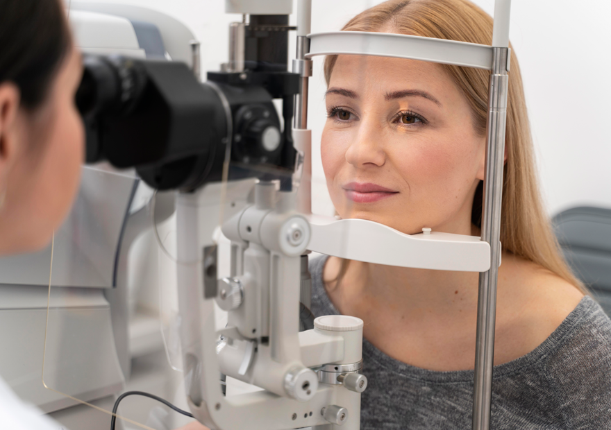É a visualização em grande aumento das estruturas oculares através de um microscópico específico chamado lâmpada de fenda. Pálpebras, conjuntiva, córnea, íris, cristalino ou catarata são avaliados através deste exame, realizado durante a consulta.