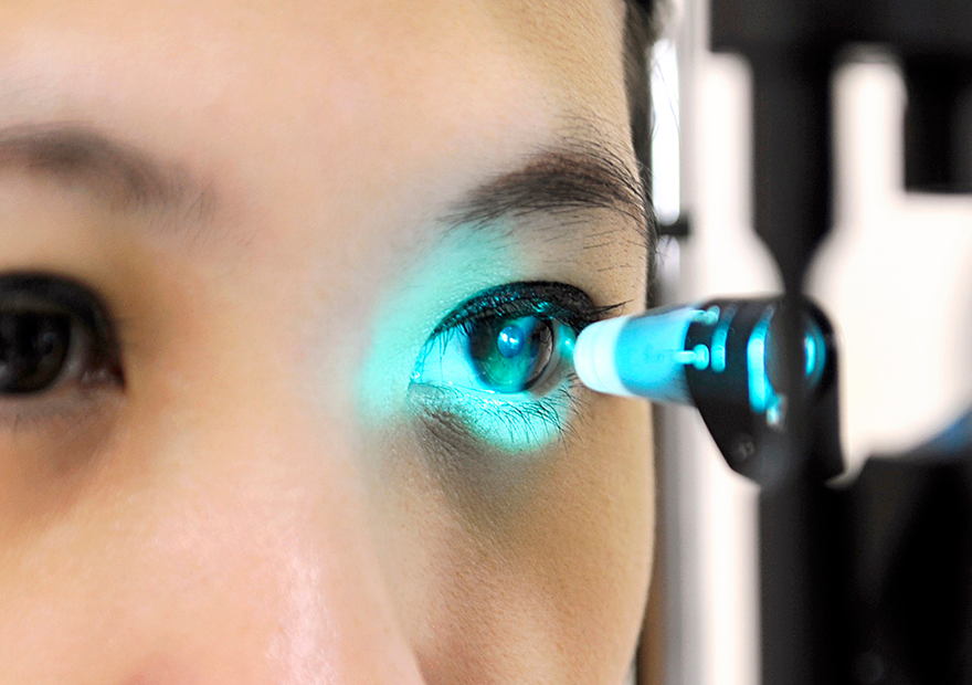 Medida da pressão intraocular, importante especialmente no exame de rotina, para triagem ou acompanhamento de glaucoma.